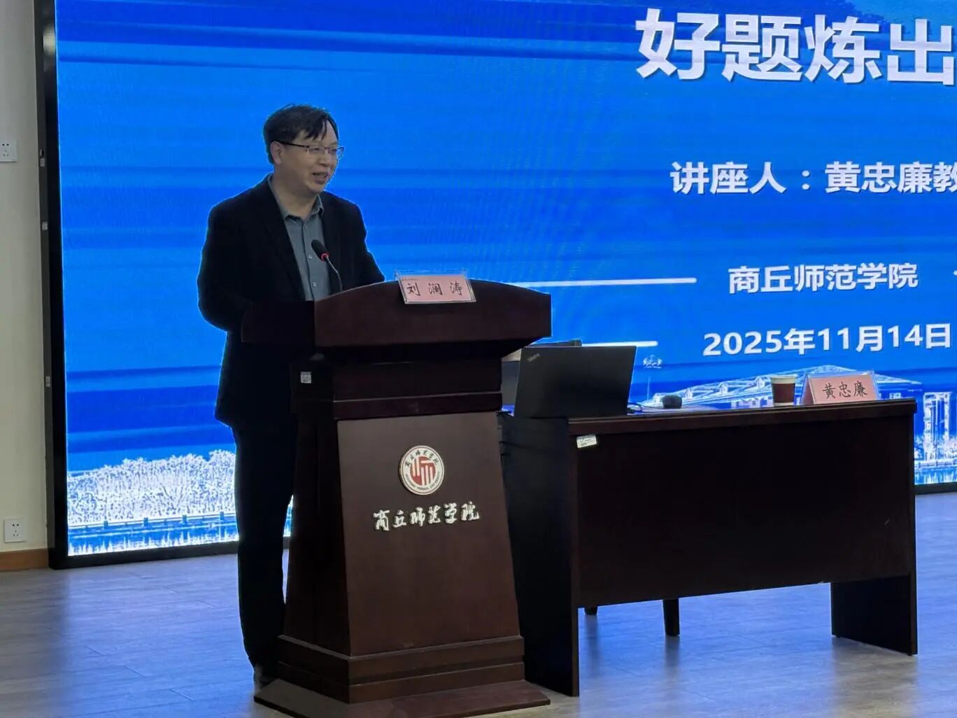 为进一步提升我校教师科研能力与选题水平,11月14日,商丘师范学院国际教育学院归德大讲堂特邀广东外语外贸大学黄忠廉教授作题为《好题炼出彩》的学术报告。各文科学院申报国家社会科学基金项目的相关领导和老师出席。报告会由刘澜涛副校长主持。