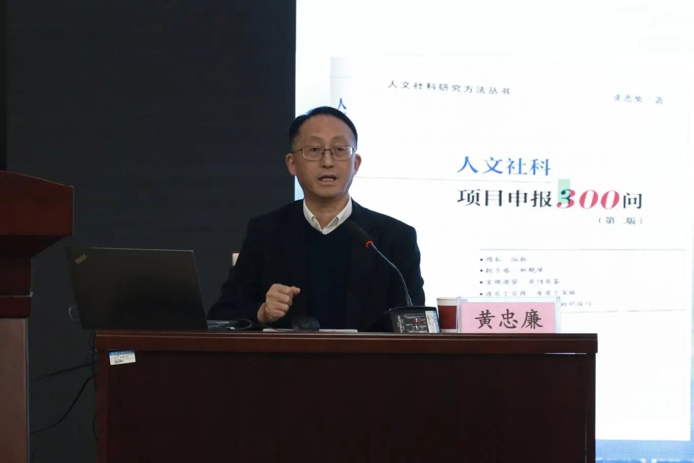 黄忠廉围绕“学科内功和时需外功”两个方面对科研选题的思路与方法展开讲解,对“学科内功”的原点、求新、拓展、聚焦、掘深、灵动到“时需外功”的滴水映日、丰盈精准及锻炼精炼的“九个陌生化”进行了深入剖析。他通过生动详实的案例,阐述了如何从现实问题中提炼出具有学术价值与研究潜力的课题,为在场老师提供了切实可行的选题策略与研究方法。