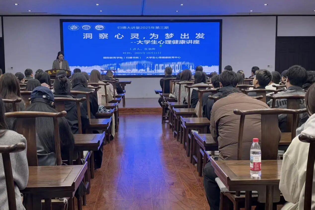 为切实关注大学生心理健康需求,帮助学子掌握心理调适方法、筑牢心理健康防线,以更积极的心态应对学业与成长挑战,值此第34个世界精神卫生日到来之际,结合“五育并举,强健身心”主题,践行第四届“先行者—心理健康校园行活动宗旨,10月11日,国际教育学院(归德书院)归德大讲堂2025年第三期 “洞察心灵,为梦出发 —— 大学生心理健康讲座” 于汉梁楼应天国学堂隆重开讲。此次讲座由国际教育学院(归德书院)、大学生心理健康教育中心联合举办,特邀新乡医学院第一附属医院学术副院长张朝辉教授主讲。学生处副处长卢剑平出席讲座,国际教育学院(归德书院)领导班子、各学院心理专员、学院全体教职工及学生代表参会,讲座由我院副院长杨静主持。