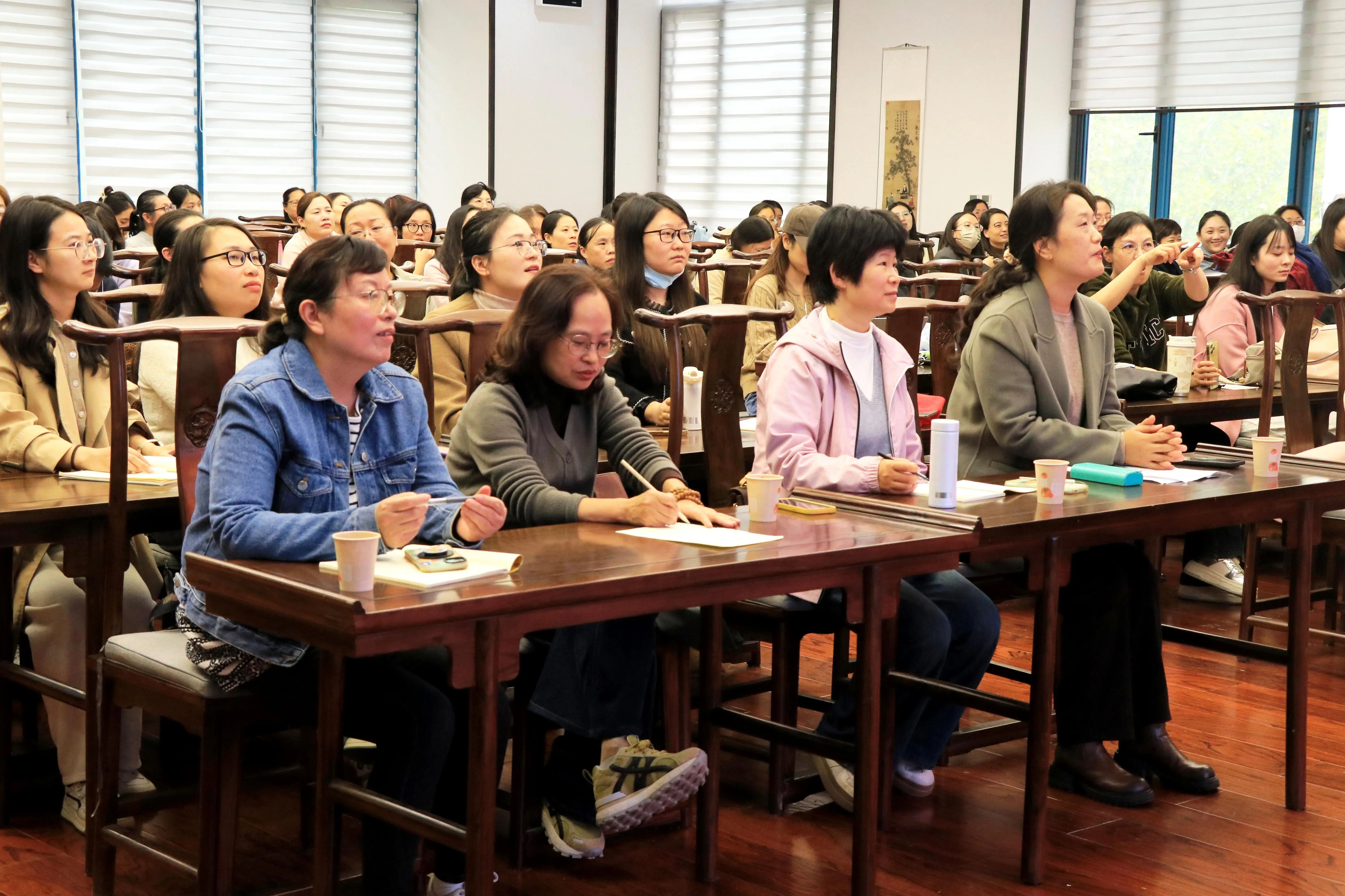 此次讲座,张朝辉教授围绕“女性心理特征”“职业女性心理健康状况”及“职业女性压力应对策略”三大核心板块展开系统阐述。她结合前沿研究成果与丰富临床案例,深入剖析了职业女性在职场竞争与家庭角色平衡中所面临的心理困境,并专业解读了压力、焦虑、情绪内耗等问题的成因。针对这些痛点,张教授提出了一系列涵盖情绪识别、碎片化减压及职场-家庭边界构建在内的科学调节方法,提供了具实操性的心理调适方案。在互动环节中,通过专业压力测试与现场交流,张朝辉深入了解女性教师当前心理状态,并针对所反映的问题,提出以“柔、静、坚、悟”四维调节法为核心的应对策略,引导大家通过情绪柔化、心境静养、意志坚定与认知觉悟,有效调适心理状态,提升自我调节能力。
