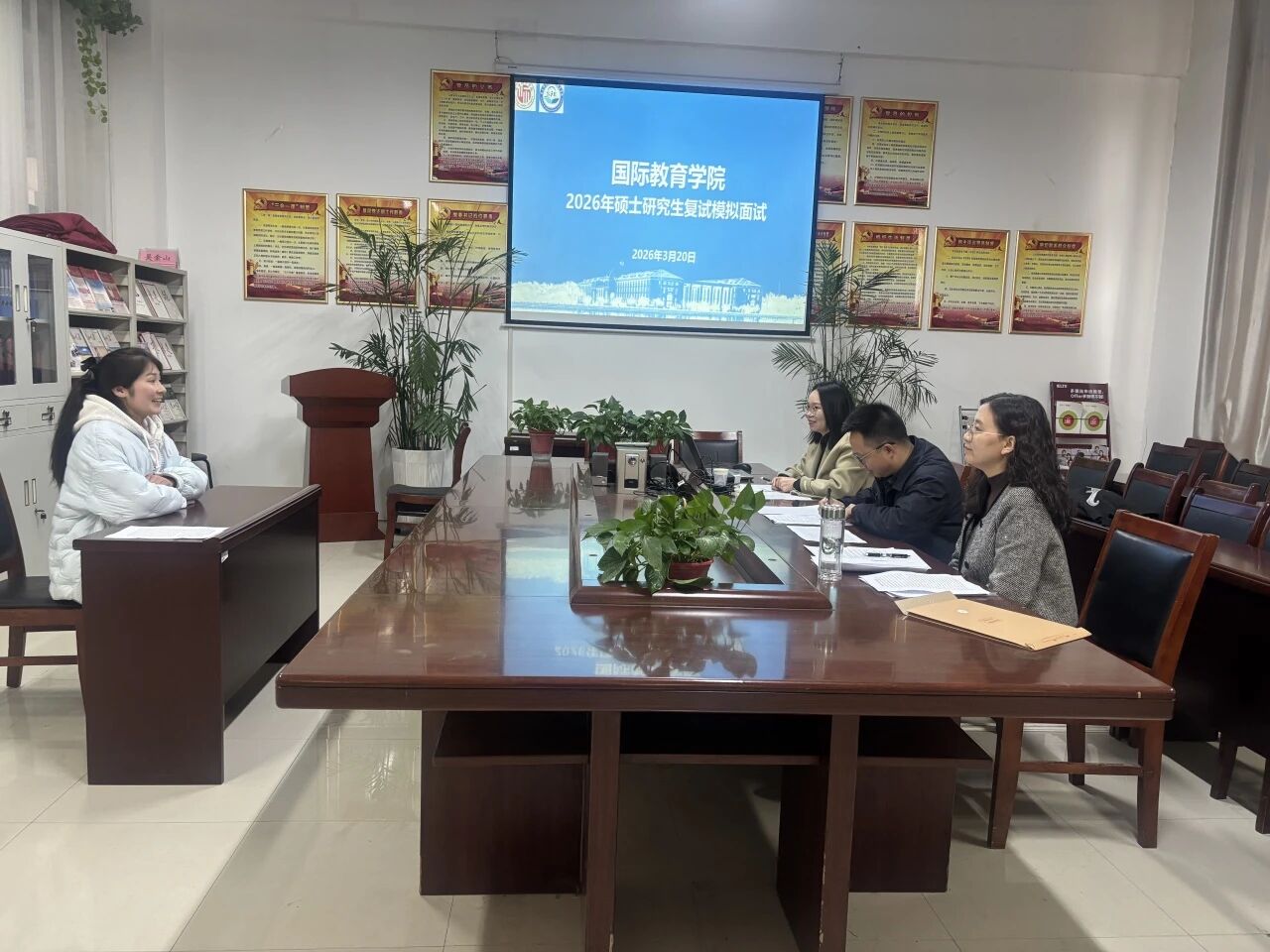为充分发挥基层党组织战斗堡垒作用,切实助力考研学子熟悉复试流程、提升应试能力,3月20日,国际教育学院(归德书院)在汉梁楼举办以“党建引领践初心 党员护航助研途”为主题的2026年考研复试模拟面试活动。学院党员教师积极参与,同时特邀各相关专业系主任及专业教师共同组成面试官团队,开展专业化、全流程指导。学院初试成绩达标的考生全员参加本次活动。
